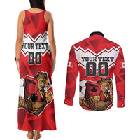 Custom Canada Football Couples Matching Tank Maxi Dress and Long Sleeve Button Shirt Beavers Mascot LT18