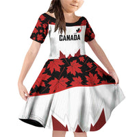 Custom Canadian Rugby Family Matching Off Shoulder Short Dress and Hawaiian Shirt Maple Leaves Sporty Art Style White Color LT03