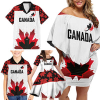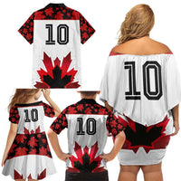 Custom Canadian Rugby Family Matching Off Shoulder Short Dress and Hawaiian Shirt Maple Leaves Sporty Art Style White Color