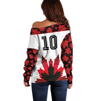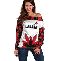 Custom Canadian Rugby Off Shoulder Sweater Maple Leaves Sporty Art Style White Color