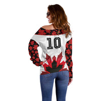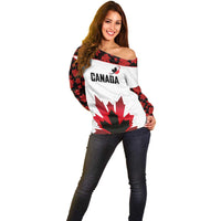 Custom Canadian Rugby Off Shoulder Sweater Maple Leaves Sporty Art Style White Color LT03
