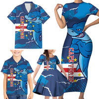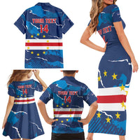 Custom Cape Verde Football Family Matching Short Sleeve Bodycon Dress and Hawaiian Shirt Go Blue Sharks - Mascot Version LT14