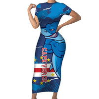 Custom Cape Verde Football Family Matching Short Sleeve Bodycon Dress and Hawaiian Shirt Go Blue Sharks - Mascot Version