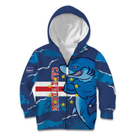 Custom Cape Verde Football Kid Hoodie Go Blue Sharks - Mascot Version LT14