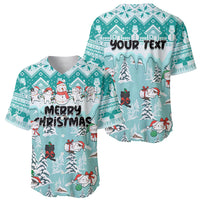 Custom Cat Christmas Baseball Jersey Cat With Snowman In Winter Scene