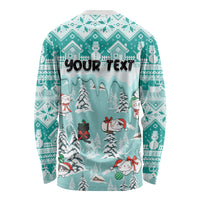 Custom Cat Christmas Long Sleeve Shirt Cat With Snowman In Winter Scene