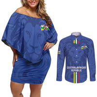 Custom Central African Republic Football Couples Matching Off Shoulder Short Dress and Long Sleeve Button Shirt Go Les Fauves Go LT15