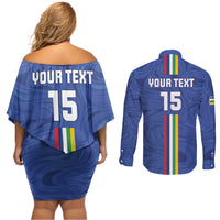 Custom Central African Republic Football Couples Matching Off Shoulder Short Dress and Long Sleeve Button Shirt Go Les Fauves Go