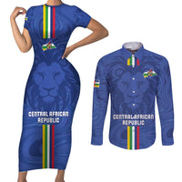Custom Central African Republic Football Couples Matching Short Sleeve Bodycon Dress and Long Sleeve Button Shirt Go Les Fauves Go LT15
