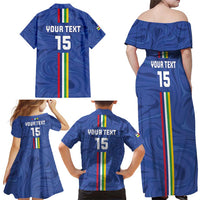 Custom Central African Republic Football Family Matching Off Shoulder Maxi Dress and Hawaiian Shirt Go Les Fauves Go