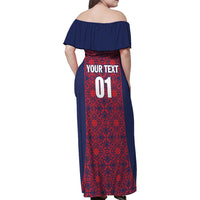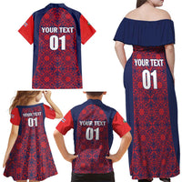 Custom Costa Rica Football Family Matching Off Shoulder Maxi Dress and Hawaiian Shirt Los Ticos Unique Pattern LT01