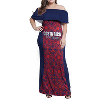 Custom Costa Rica Football Family Matching Off Shoulder Maxi Dress and Hawaiian Shirt Los Ticos Unique Pattern