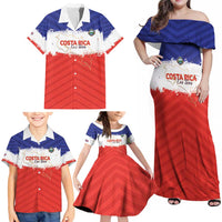 Custom Costa Rica Football Family Matching Off Shoulder Maxi Dress and Hawaiian Shirt Map With Los Ticos Sporty Style