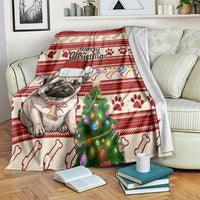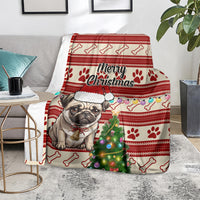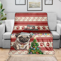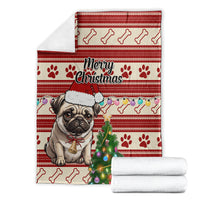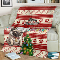 Custom Dog Christmas Blanket Cute Pug Dog With Xmas Tree