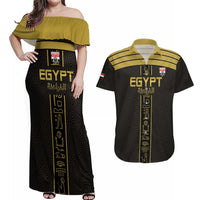 Custom Egypt Football Couples Matching Off Shoulder Maxi Dress and Hawaiian Shirt Yalla Yalla Pharaohs - Black Ver LT15