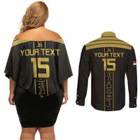 Custom Egypt Football Couples Matching Off Shoulder Short Dress and Long Sleeve Button Shirt Yalla Yalla Pharaohs - Black Ver