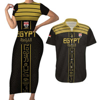 Custom Egypt Football Couples Matching Short Sleeve Bodycon Dress and Hawaiian Shirt Yalla Yalla Pharaohs - Black Ver LT15