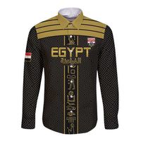 Custom Egypt Football Long Sleeve Button Shirt Yalla Yalla Pharaohs - Black Ver LT15