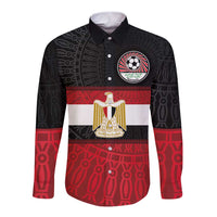 Custom Egypt National Football Long Sleeve Button Shirt Egyptian Geometric and Flag LT03