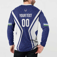 Custom Football Uzbekistan Button Sweatshirt Milliy Jamoa Blue Version
