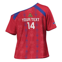 Turn heads and express your unique style with the Custom Haiti Football Cross Shoulder Shirt Les Grenadiers Veve Vodou Red from Wonder Print Shop. Perfect for casual outings, festivals, or making a fashion statement, this custom-made cross shoulder shirt combines high-end craftsmanship with eye-catching design.