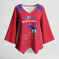 Add a chic touch to your wardrobe with the Custom Haiti Football Kimono Sleeve Blouse Les Grenadiers Veve Vodou Red from Wonder Print Shop. Designed for versatility, this V-neck blouse features flowing kimono-style sleeves and a relaxed fit — perfect for both casual and dressy occasions. Crafted with premium polyester fabric, it offers a soft, lightweight feel for all-day comfort.