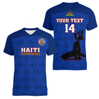 Custom Haiti Football Women V Neck T Shirt Les Grenadieres 2023 World Cup Blue Version