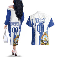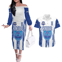 Custom Honduras Football Couples Matching Off The Shoulder Long Sleeve Dress and Hawaiian Shirt Los Catrachos Grunge Style