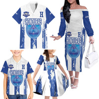 Custom Honduras Football Family Matching Off The Shoulder Long Sleeve Dress and Hawaiian Shirt Los Catrachos Grunge Style