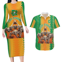 Custom Ivory Coast Football Couples Matching Long Sleeve Bodycon Dress and Hawaiian Shirt The Champions Les Elephants 2024 LT9