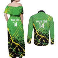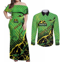 Custom Jamaica Football Couples Matching Off Shoulder Maxi Dress and Long Sleeve Button Shirt Come On Reggae Boyz Red-billed streamertail