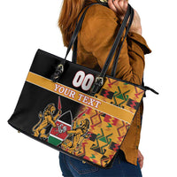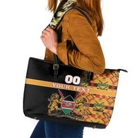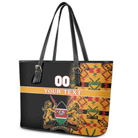 Custom Kenya Coat Of Arms Leather Tote Bag With Kente Patterns