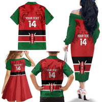 Custom Kenya Football Family Matching Off The Shoulder Long Sleeve Dress and Hawaiian Shirt Come On Harambee Stars
