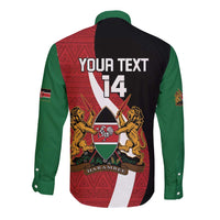 Custom Kenya Football Long Sleeve Button Shirt Maasai Shield Coat Of Arms Style
