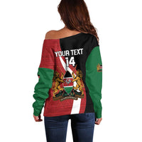 Custom Kenya Football Off Shoulder Sweater Maasai Shield Coat Of Arms Style LT14