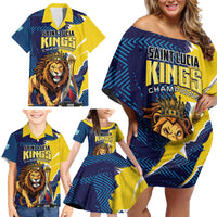 Custom Kings Saint Lucia Champions Cricket Family Matching Off Shoulder Short Dress and Hawaiian Shirt St Lucia Glory Awaits