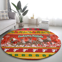Custom Lithuania Christmas Round Carpet Lietuva Santa Claus With Reindeer