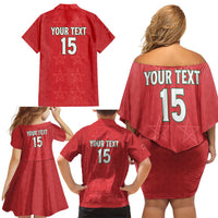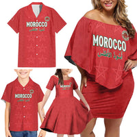 Custom Morocco Football Family Matching Off Shoulder Short Dress and Hawaiian Shirt Dima Maghrib