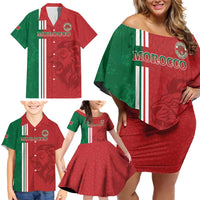 Custom Morocco Football Family Matching Off Shoulder Short Dress and Hawaiian Shirt Go Atlas Lions