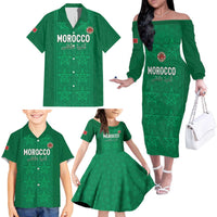 Custom Morocco Football Family Matching Off The Shoulder Long Sleeve Dress and Hawaiian Shirt Sir Sir Sir