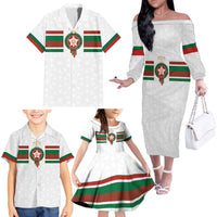 Custom Morocco Football Family Matching Off The Shoulder Long Sleeve Dress and Hawaiian Shirt The Roar of Atlas Lions LT03