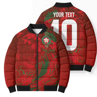 Grab your Custom Morocco National Football Bomber Puffer Jacket Atlas Lions Sporty Abstract Pattern by Wonder Print Shop today and experience comfort, style, and versatility in one sleek jacket.