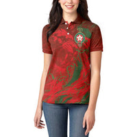 Custom Morocco National Football Women Polo Shirt Atlas Lions Sporty Abstract Pattern LT03