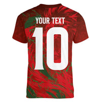 Custom Morocco National Football Women V-Neck T-Shirt Atlas Lions Sporty Abstract Pattern