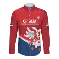 Custom Serbia Football Long Sleeve Button Shirt Come On Ealges Coat Of Arms Style