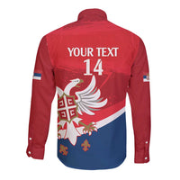 Custom Serbia Football Long Sleeve Button Shirt Come On Ealges Coat Of Arms Style LT14