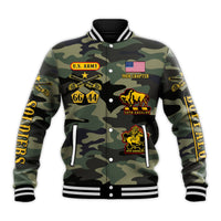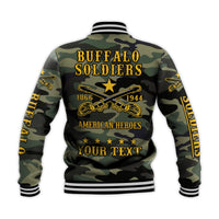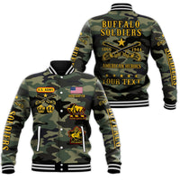 (Custom Text and Chapter) Buffalo Soldiers Baseball Jacket Camouflage American Heroes BSMC LT13