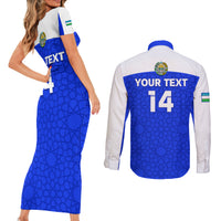 Custom Uzbekistan Football Couples Matching Short Sleeve Bodycon Dress and Long Sleeve Button Shirt 2024 Go Champions Uzbek Pattern