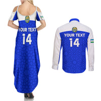 Custom Uzbekistan Football Couples Matching Summer Maxi Dress and Long Sleeve Button Shirt 2024 Go Champions Uzbek Pattern