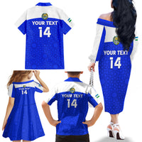 Custom Uzbekistan Football Family Matching Off Shoulder Long Sleeve Dress and Hawaiian Shirt 2024 Go Champions Uzbek Pattern LT14